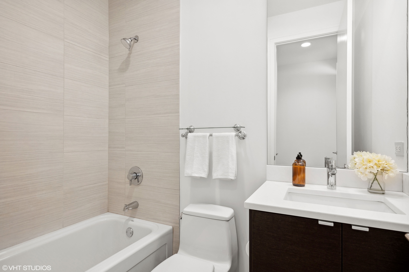 Sleek and modern 2-bedroom, 2-bathroom condo located in the heart of East Village. This 2nd story walk up features a modern open-concept layout with newly refinished hardwood floors, and an abundance of natural light. The gourmet kitchen is outfitted with stainless steel Bosch appliances, custom cabinets, quartz countertops, and an oversized waterfall island with breakfast bar seating. A comfortable well appointed living room with a wall mounted fireplace, and 2 private outdoor spaces is great for entertaining. The primary suite boasts a walk-in closet and an en-suite bathroom with heated floors, dual vanities, and a glass steam shower. All closets have been professionally built out, Grohe/Toto fixtures, custom blinds and window treatments. Prime location in Pritzker School district and easy access to public transit and the CTA blue line. Parking is garage and covered, but not fully enclosed.